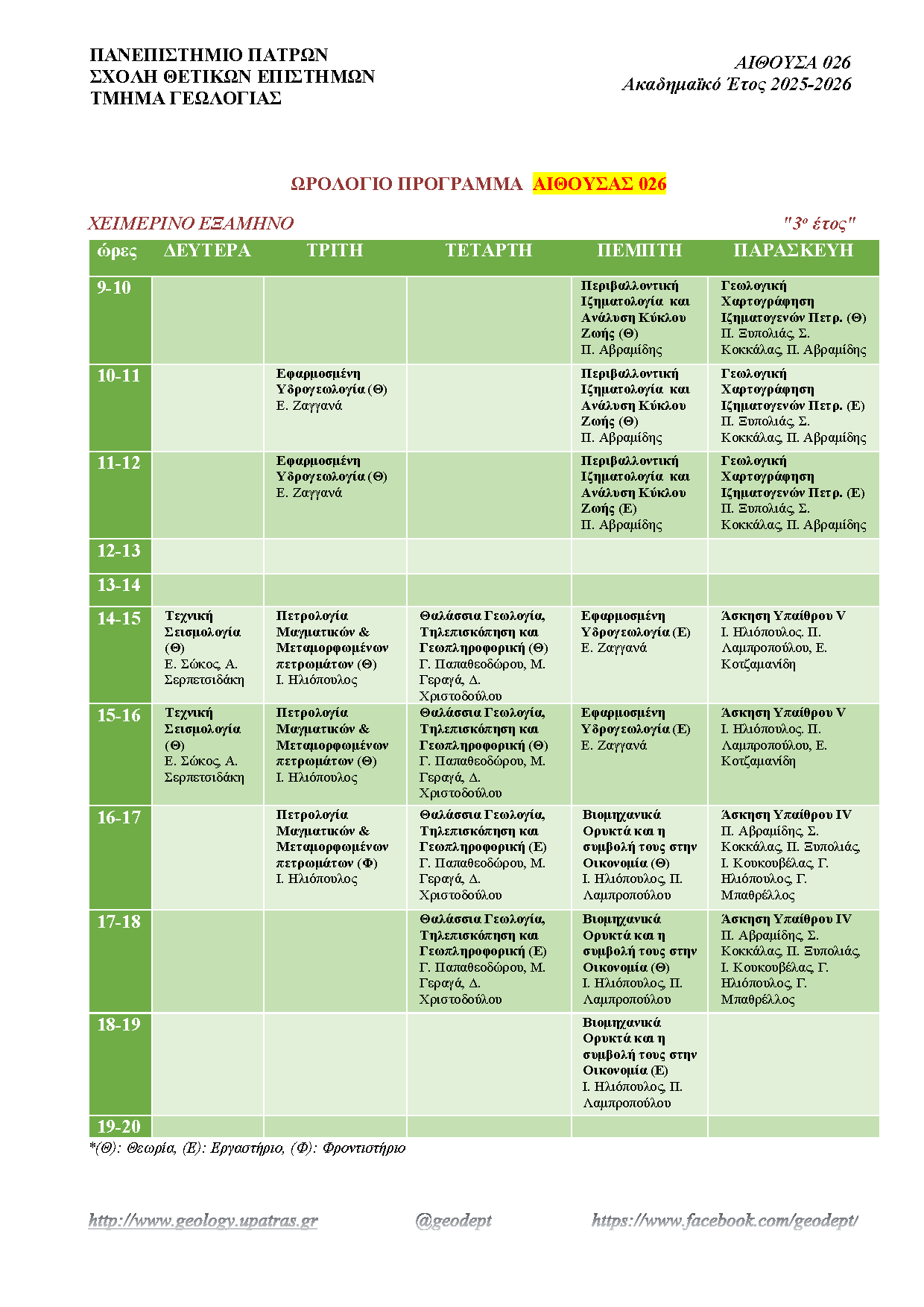 Τομέας Εφαρμοσμένης Γεωλογίας & Γεωφυσικής (σε ισχύ ως το 2023)
